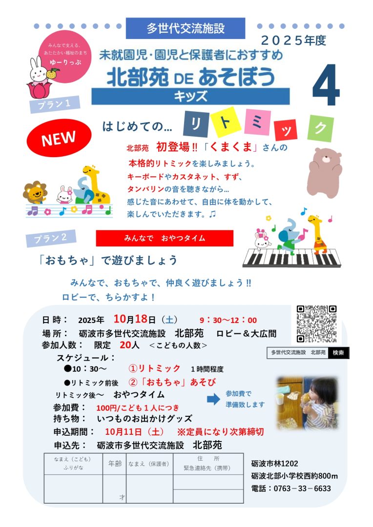 北部苑DEあそぼう~キッズ~④ 参加者募集‼