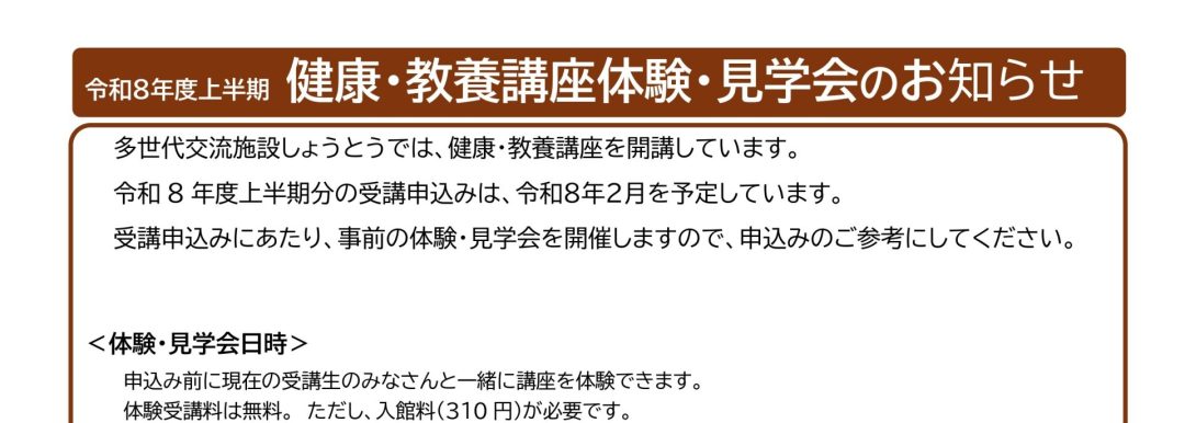 令和8年度上半期健康・教養講座体験・見学会のお知らせ