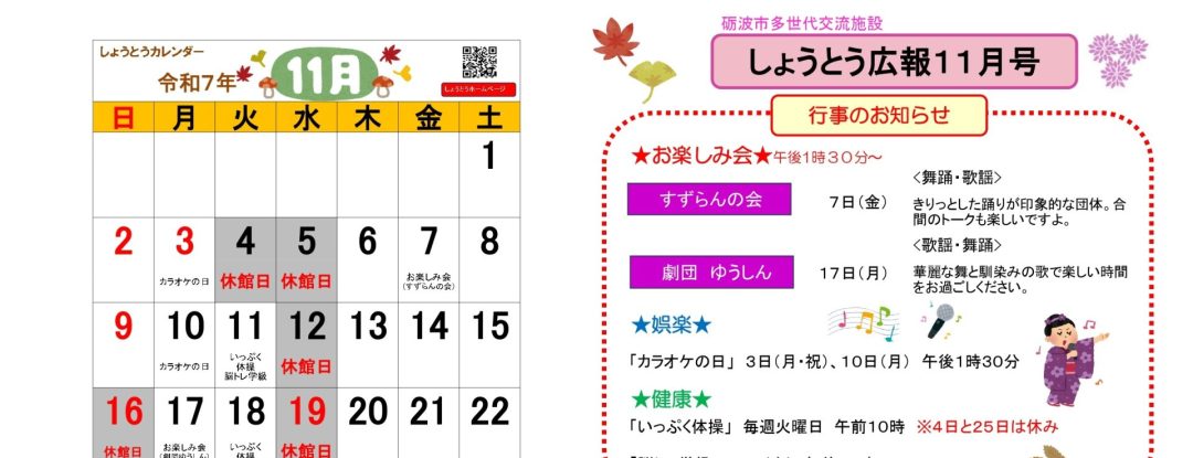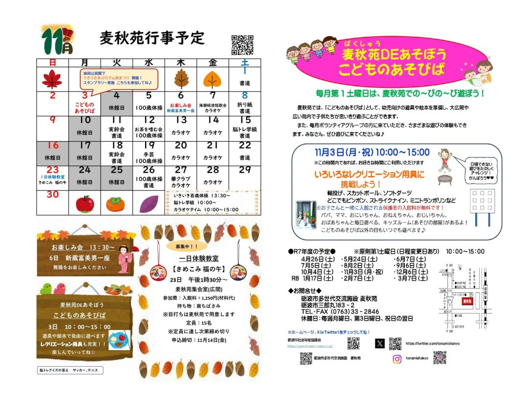麦秋苑行事予定&こどものあそびば 11月
