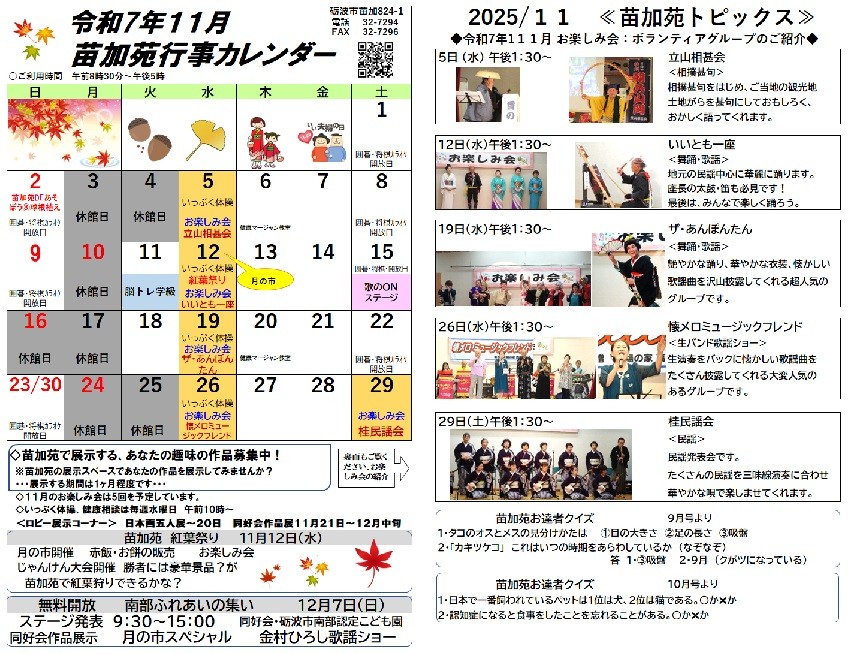 苗加苑行事予定 令和7年11月