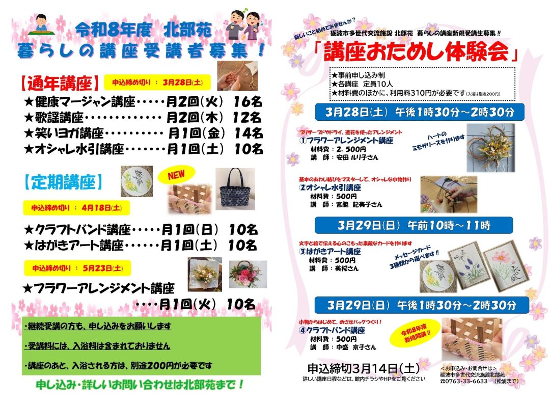 北部苑暮らしの講座 受講生&おためし体験参加者募集‼