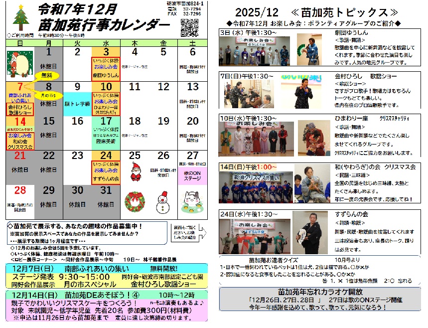 苗加苑行事予定 令和7年12月